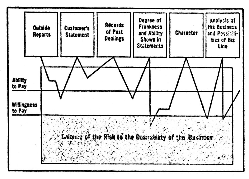 The handling of the error in last night's paper is something that will score down where the success of the business lies—and to lose on it means losing a vital point.[194] In short, it affects the permanent standing of the business enterprise. So does the securing of the radio advertisement. It's business news and something his readers must know about. So after it he goes. On the other hand, the institutional advertising will add only to the revenue of the newspaper. Don't mistake the point. He wants that contract, too. It will add materially to his profits. But getting it or not getting it will in no way affect the standing of the paper with its customers. School will keep just the same. So that particular job is on the other side of the line. That's why he has a sales manager. To illustrate once more, let's attempt to "score" the work of a credit man. What is the "vital element" in his work? What determines whether his work is worth doing, or whether it's worthless? Offhand, you might say: "Preventing losses on bad debts." But is it that? Surely not, when we analyze the job. The final objective of the credit department is to enable the[195] house to sell more goods by extending credit wherever it is justified. On that basis it is easy to see that the "vital element" in the credit man's job is "to not lose a good sale"—and we know we're splitting an infinitive to say it. If it weren't, why have a credit man at all? It would be far simpler not to extend credit to anyone who could not prove his worth.